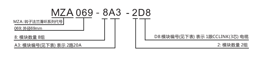 *±ÈÈçMZA069-8A3-2D8, ÆäÖÐ8A3-2D8ÊÇÖ¸£º8×é2·20A(¼´16·20A)+2×é1¸ùCCLINK(3о£©µçÀÂ