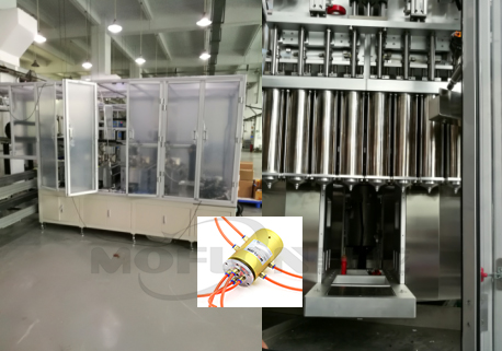 国内知名锂电池注射设备制造商与默孚龙联手打造锂电池生产中使用的注射设备。默孚龙滑环专门为此设备提供360度旋转导液通气服务。